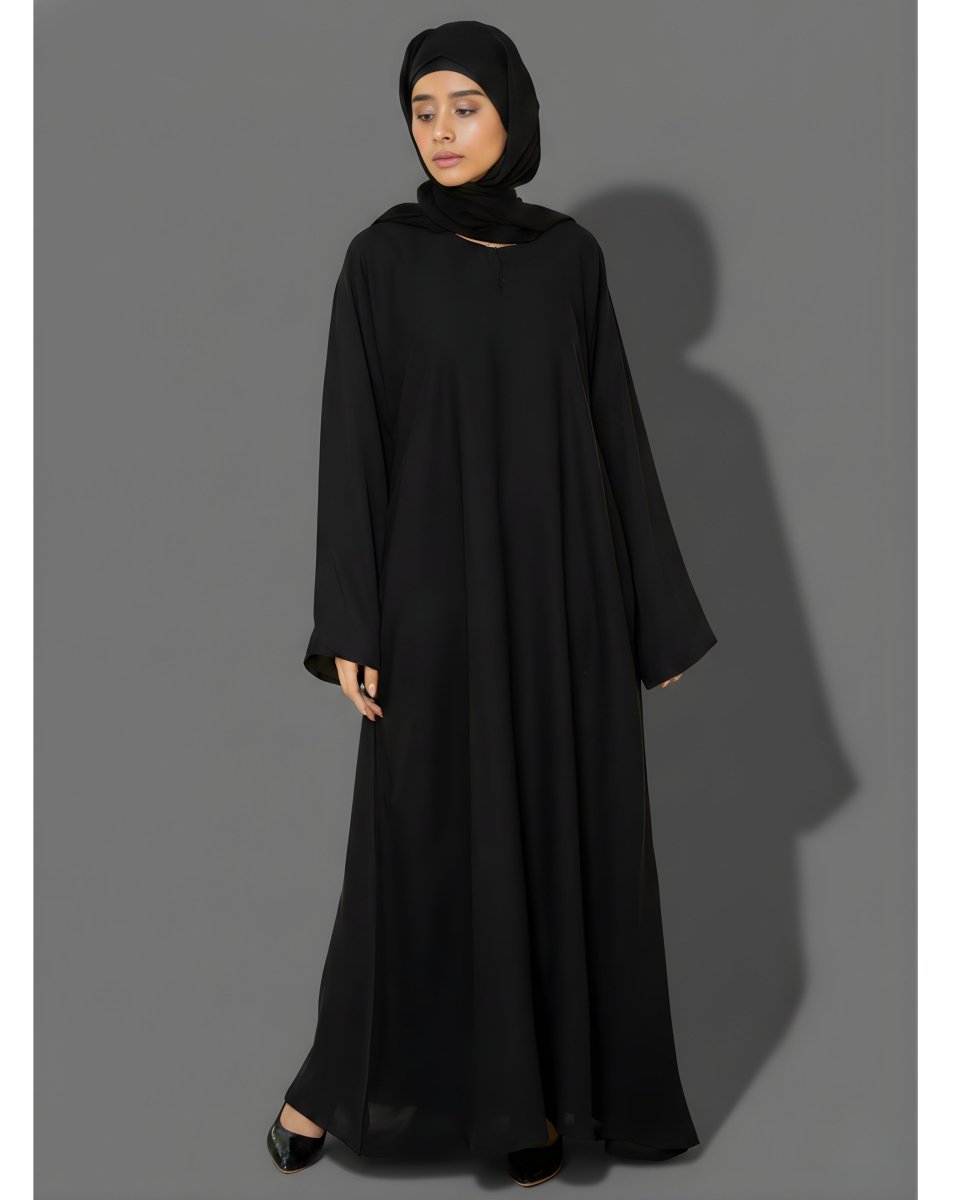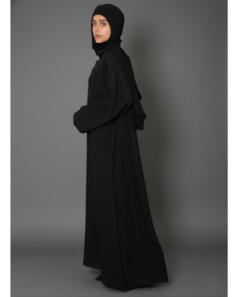 Elegant Front Close Style Abaya with Side Pockets Add this incredibly beautiful and comfortable Front Close Style Abaya to your wardrobe. This abaya is specially designed for women who prefer a modern look combined with simplicity.