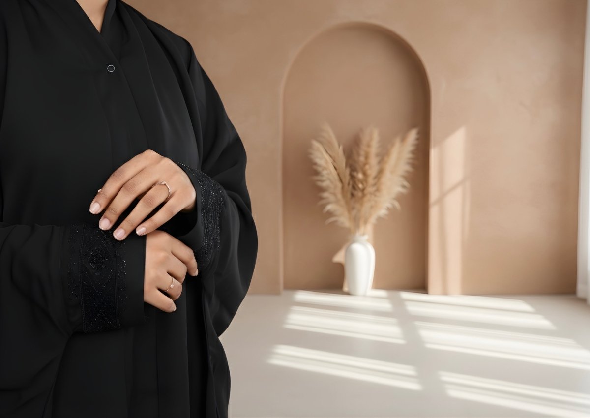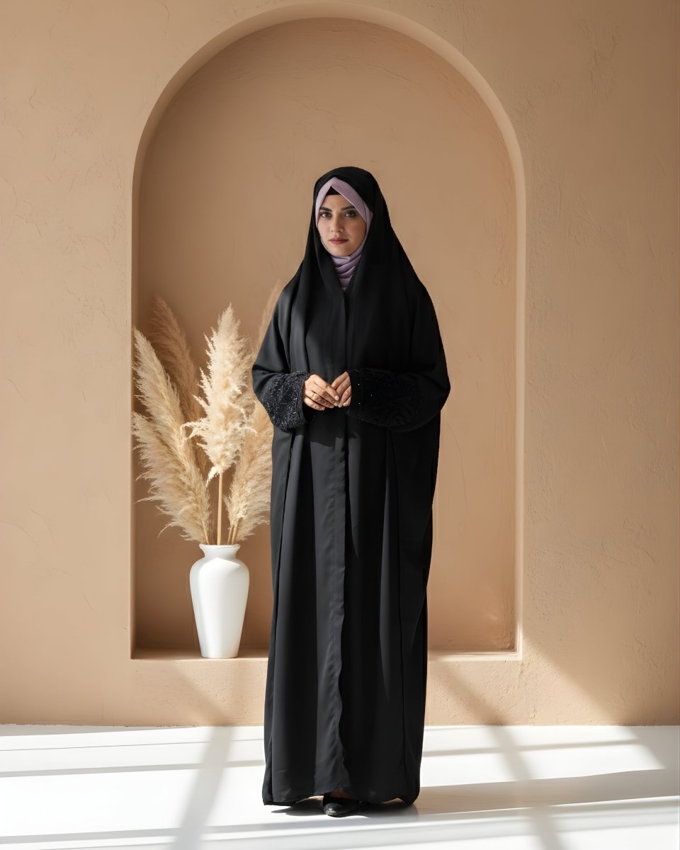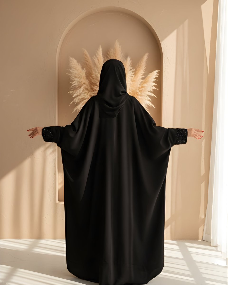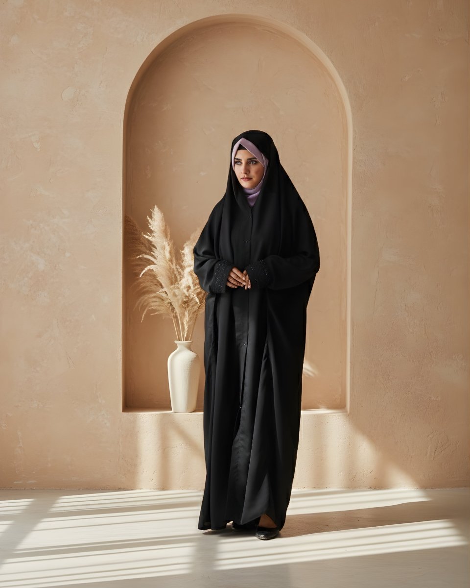 Signature Iraqi Drape: Featuring the traditional Iraqi "overhead" style and a generous flare, it ensures modest, full-body coverage from head to toe.